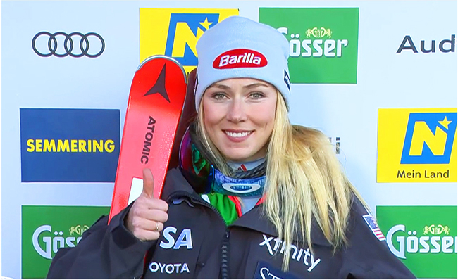 Несмотря на скромные заявления, которые американка Микаэла Шиффрин сделала вчера после гигантского слалома, сегодня она вновь была недосягаема. После первой попытки слалома в Земмеринге Микаэла лидирует с комфортным отрывом в 72 сотых, шведка Анна Свенн-Ларссон – вторая, еще одна американка Пола Мольцан – третья, +0.79. Лена Дюрр идет четвертой, Петра Влхова – пятой, Венди Холденер – на шестом месте, Зринка Лютич – седьмая (+1.19).