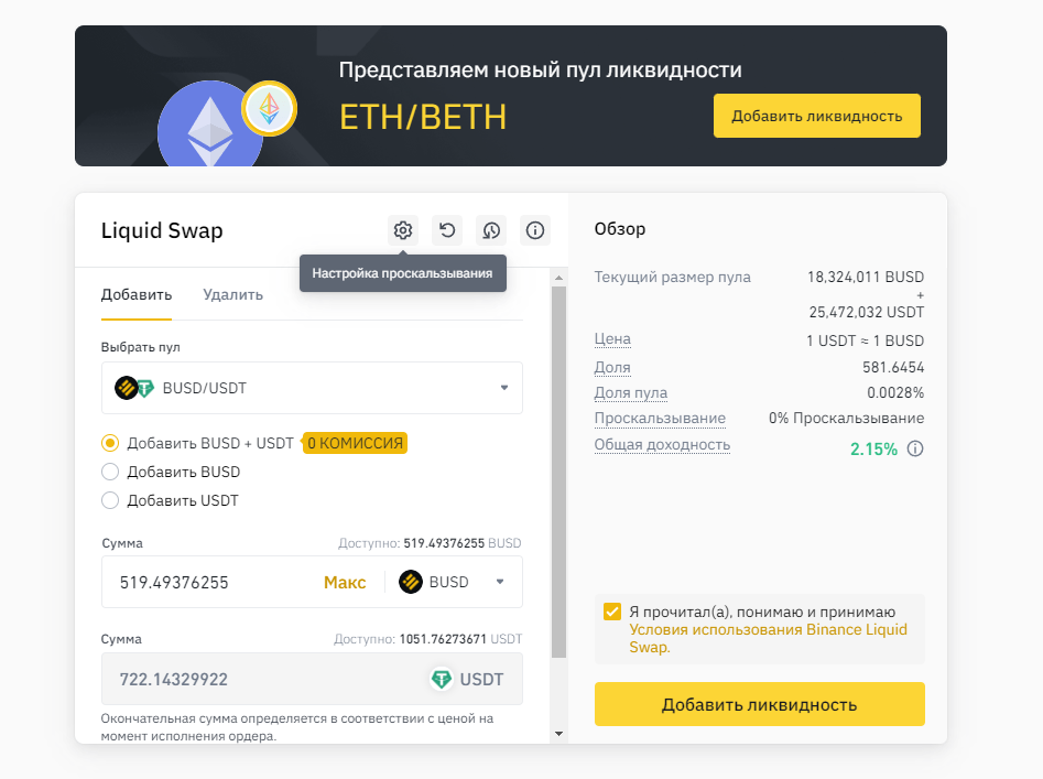 Решил попробовать вложить свои небольшие запасы стейблкоинов и попробовать заработать на пуле ликвидности крипты. Пока сумма небольшая, Я больше изучал сам механизм вложения. Кому интересна работа с криптой без высокого риска подписывайтесь. Скоро будет ещё материал на тему заработка.