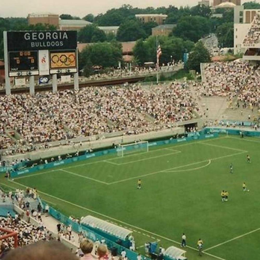 Афины подавали заявку на право проведения Олимпиады 1996 года, подкрепляя её 100-летним юбилеем Олимпийского движения, но проиграли американской Атланте. Однако часть программы в Афинах всё же прошла: матчи футбольного и волейбольного турниров, а также соревнования по художественной гимнастике. Правда, не в Греции, а в городе Атенс неподалёку от Атланты, англоязычное написание которого совпадает с написанием Афин.
