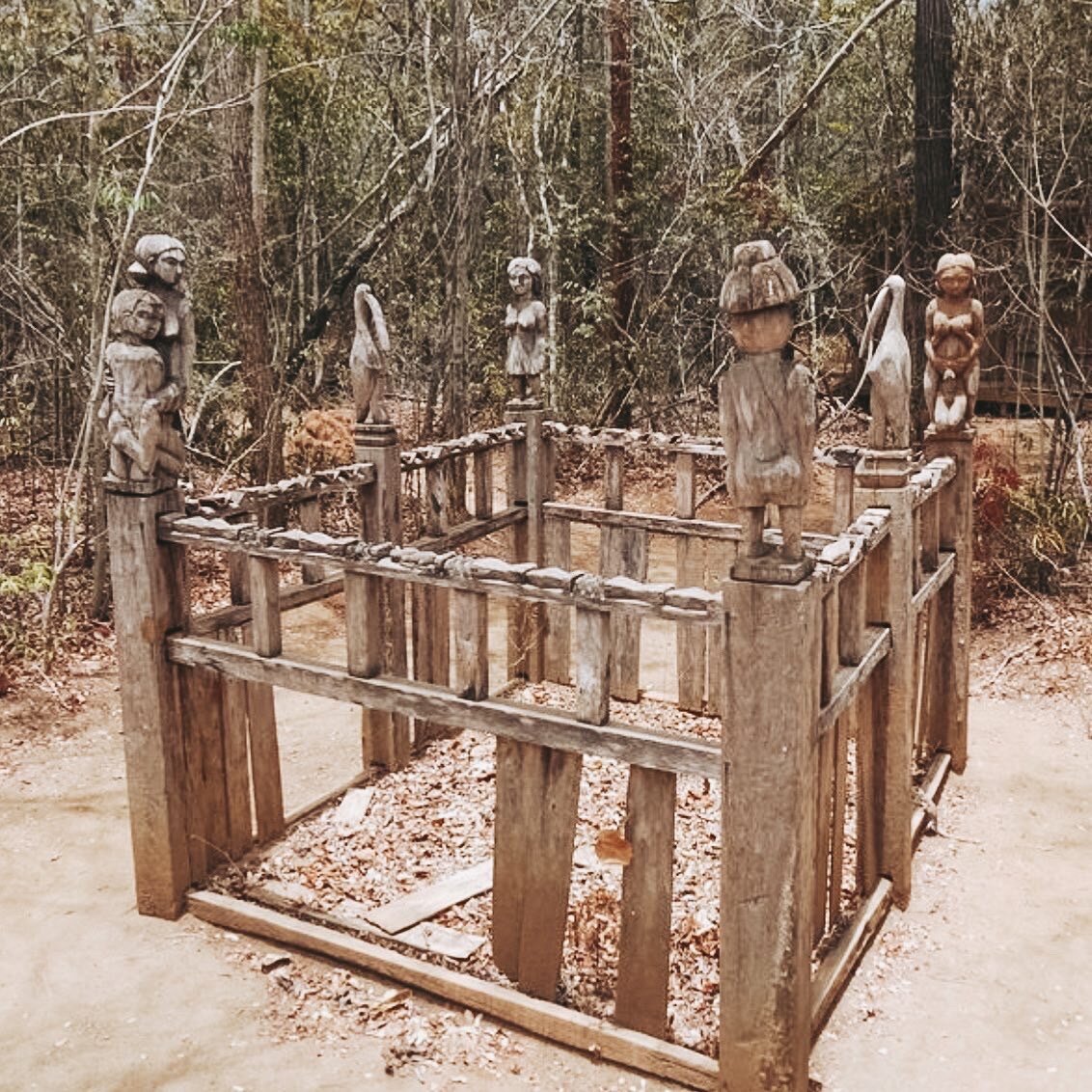 📍Мадагаскар: sakalava, mahafaly, merina Перечисленные народы хоронят представителей важных семей в деревянных гробницах в лесу. Это большая тема, сегодня расскажу только о традиции сакалава. Они делают для своих умерших прямолинейные ограждения из дерева, а по 4 углам или в середине каждой из 4 сторон могилы ставят фигуры. Это могут быть крупные птицы или фигуры людей, одиночные или парами. Птиц называют mijoa, исследователи полагают, они представляют взаимосвязь жизни и смерти. Человеческие фигуры могут быть одиночные, мать с детьми, но чаще мужчина и женщина. В таком варианте пара намекает на плодовитость и взаимодополняемость полов. Людей кстати обычно изображают без одежды, более того, не редки настоящие эротические сцены. Именно такая пара изображает мужчину и женщину в сексуальной позе. Более глубокий смысл таких образов заключается в содействии возрождению мертвых в мире предков. Как узнать, что фигуры относятся к сакалава? Во-первых, характерные шаровые прическ