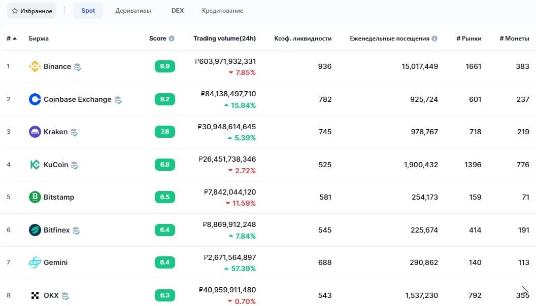Криптобиржи. Часть 5. Рейтинг криптобирж по объему торгов:опять же за информацией идем на coinmarketcap