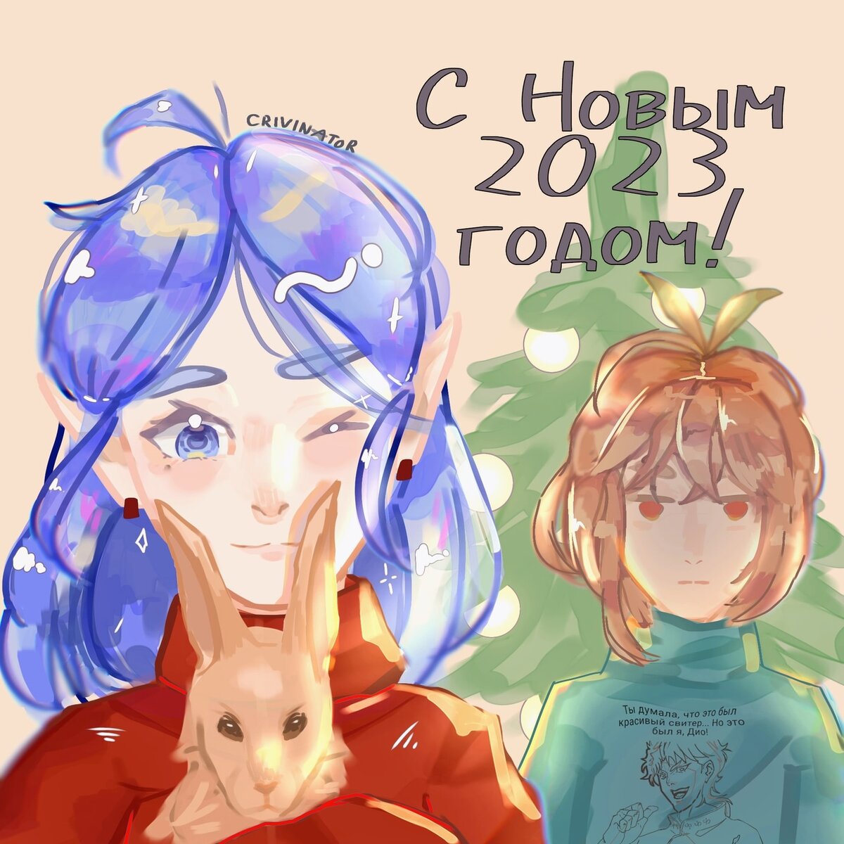 Привет-привет, мои любимые тюленята! Вот-вот 2022 год попрощается с нами, уступая место новому, 2023 году. А что это значит? Это значит, что настало время приятных подарков и призов! Вы все у меня такие умнички - такие талантливые! Пришло время подвести итоги новогоднего конкурса рисунков и наградить победителей, а так же порадовать остальных участников. Большое спасибо всем зайкам, которые отправляли свои прекрасные рисунки! *Зло бурчит из-за того, что дзен не дает нормально тегнуть людей* 1 место (денежный приз или арт от меня) - Crivinator Запрыгнув последний вагон, этот арт сразил меня наповал - я влюбился в прекрасную Мотисиаши и мандаринообразного (с) Анейя с первого взгляда. Такой милый стиль, такой милый кролик! А какие нежные, приятные цвета... мм... Короче, я влюблен, нет слов - одни эмоции! 🥴💖💖
