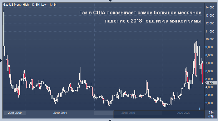 Газ в США показывает самое большое месячное падение с 2018 года из-за мягкой зимы