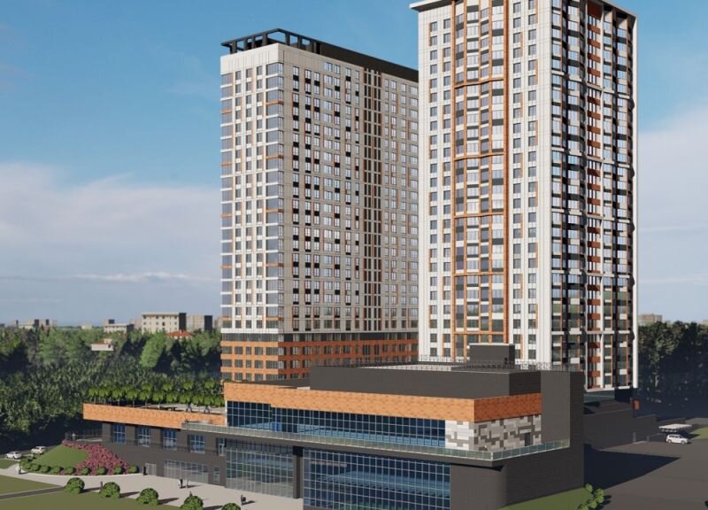 Вместе с жилым комплексом в микрорайоне появится новая система координат, внеся в панораму элементы выразительности, спокойствия и равновесия. Отличительной особенностью проекта является его архитектурное решение – оба здания возвышаются над трехуровневым стилобатом, в котором будут располагаться подземный паркинг на 435 машин, торговый центр и зоны отдыха.