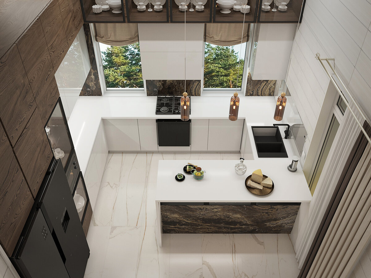 В настоящее время наша компания строит загородный комплекс в коттеджном поселке «Бриллиант» Агалатовского сельского поселения Ленинградской области. Комплекс состоит из жилого дома, русской бани и гаража. Дом жилой площадью 180 кв. м имеет 3 спальни, кухню-столовую, большую гостиную с панорамными окнами, два санузла, утепленную террасу. Приведенные ниже фотографии показывают, как будут выглядеть интерьеры дома, согласно проекту. Кухня столовая Спальни Гостиная Санузлы Коридоры Когда дом будет достроен, мы поделимся фотографиями его реальных интерьеров. Компания «Raivola House» – строительство и реновация домов из дерева. Адрес компании: Выборгский район, гп Рощино, ул. Железнодорожная 4Б, корпус 3. Телефон: +7 (812) 603-77-30 e-mail: info@raivola-house.ru