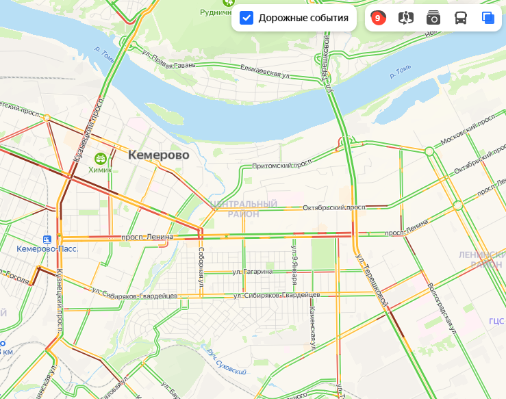 30 декабря на дорогах Кемерова движение значительно затруднено: по данным Яндекса, пробки составляют 9 баллов. В ОГИБДД по городу Кемерово прокомментировали ситуацию. — Значительное скопление транспорта связано с предновогодней суетой, так как в основном наибольшая концентрация транспортных средств отмечается вблизи крупных торговых центров города, — сообщили в Госавтоинспекции. А также посоветовали в ДТП в случае, если никто не пострадал, самостоятельно зафиксировать обстоятельства произошедшего, после чего освободить проезжую часть и позже обратиться в дежурную группу ОБ ДПС ОГИБДД управления МВД России по городу Кемерово. Скриншот: Яндекс Карты