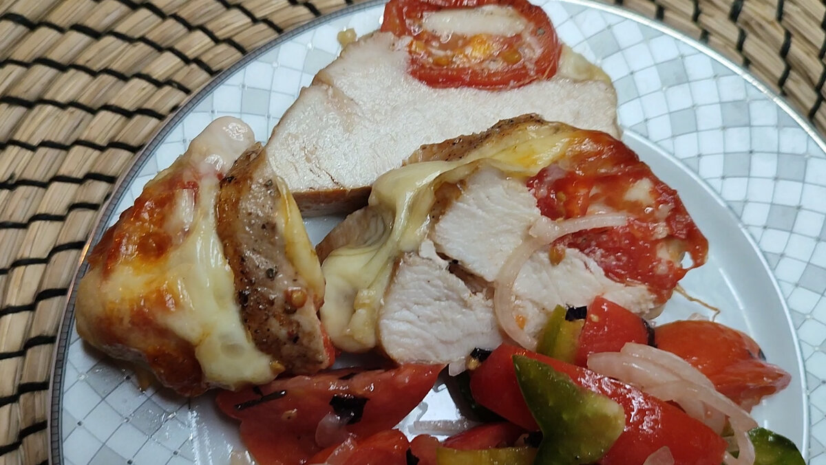 Здравствуйте, дорогие читатели. Я знаю, что многие работают даже 31 декабря, сама так работала. Приходила с работы в 8 часов вечера, нужно было что-то приготовить по-быстрому, чтобы и красиво было и вкусно. Спасибо дочка помогала, когда подросла. Я понимаю каждого из вас, потому что сама была в вашей "шкуре", уж простите меня за такое сравнение. Рецепт, который я хочу вам сегодня предложить очень прост и доступен, готовится он быстро. Я уже рассказывала вам о том как приготовить грудку капрезе. Это может быть грудка индейки или куриная грудка, в любом случае это вкусно и очень ярко особенно если её дополнить овощным салатом. Сегодня я вас познакомлю ещё с одним блюдом, которое меня частенько выручает, когда нет времени. Это куриная грудка запечённая с сухофруктами и овощами. ✅Сначала морковь. Лучше выбрать удлинённый корнеплод, который удобно нарезать кружочками. Сразу раскладываем кружочки моркови на сковороду, смазанную растительным маслом. ✅ Грудку нарезаем довольно крупными кусочк