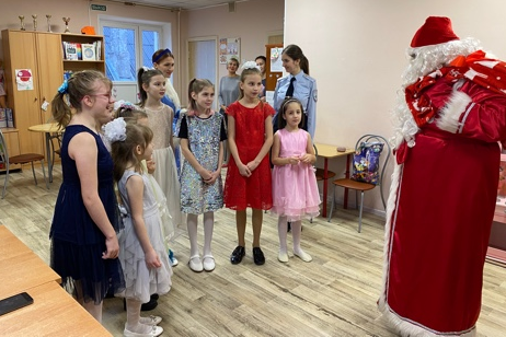 С поздравлениями, полезными подарками, конкурсами и праздничным настроением к воспитанникам приюта пришли полицейский Дед Мороз и Снегурочка.