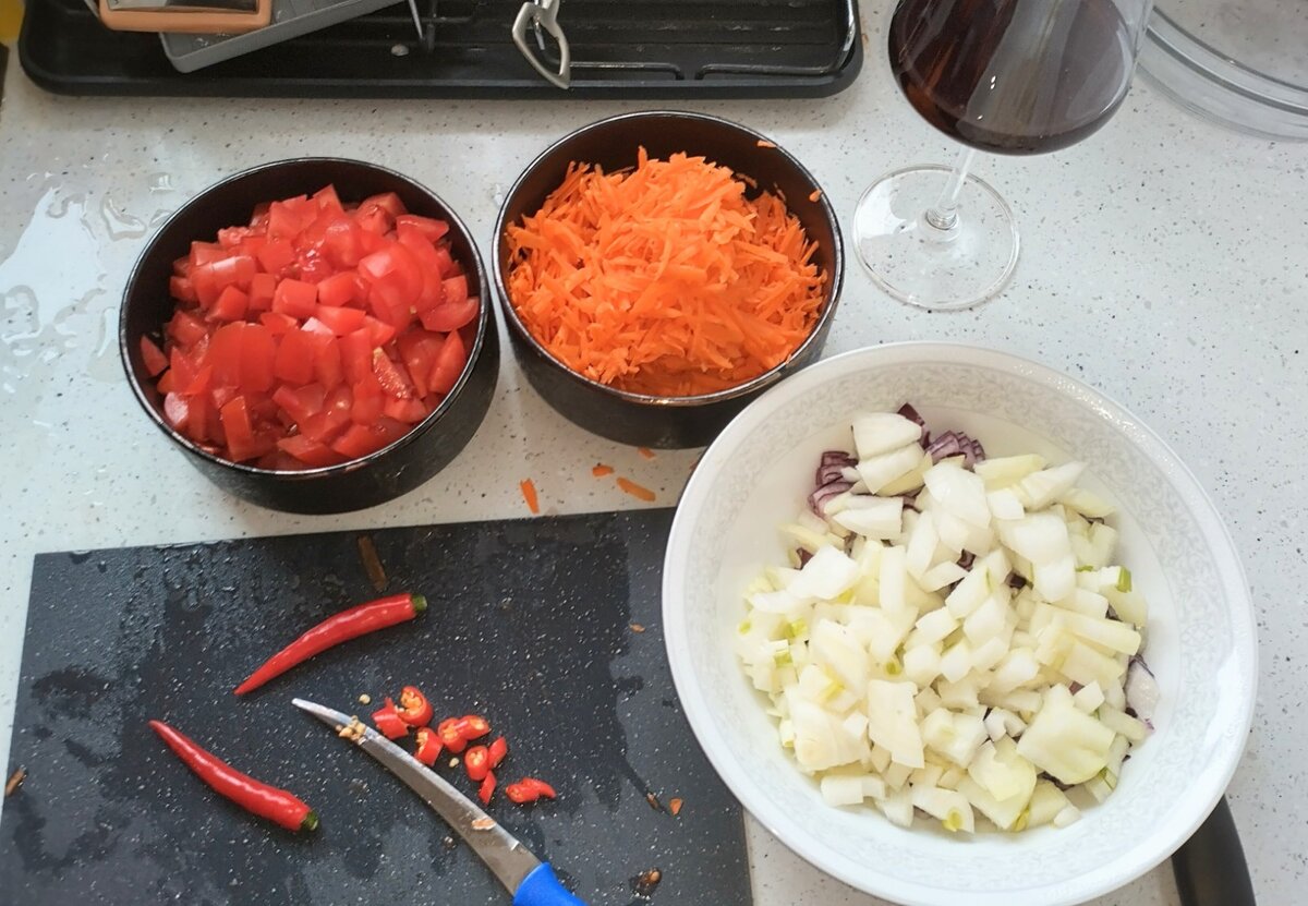 Праздничный стол - это уже завтра. А вот послезавтра и далее... не исключено (и даже очень вероятно) свидание с известным недугом- похмельным синдромом)) Кому как, а я считаю, что раз уж случилось, то самое рабочее лекарство - это наваристые кислые щи или борщ! Но варить их будет уже поздно и силы будут не те - посему решил заготовить супчику впрок с помощью автоклава) Исполняется впервые - вышло недурно, но в конце будут замечания коррективы по итогу;) Ну и варить будем, конечно, из Лося - лучшая основа форева! Сначала готовим зажарочку по классике: Лук, морковка, помидорки+паста, тёртая варёная свёкла, перчик чили. Специи по вкусу- смесь перцев и сушеный чеснок. Соль не кладу так как в рецепте будет достаточно соленая квашеная капуста! После зажарочки режем на небольшие кусочки лопатку сохатого, чистим и режем картофан, шинкуем ассорти зеленушки (лук, петрушка, укроп): Идём в сарайку за домашней квашеной капусткой- без неё в похмельном борще никак, это важнейший ингредиент!)))) Посл