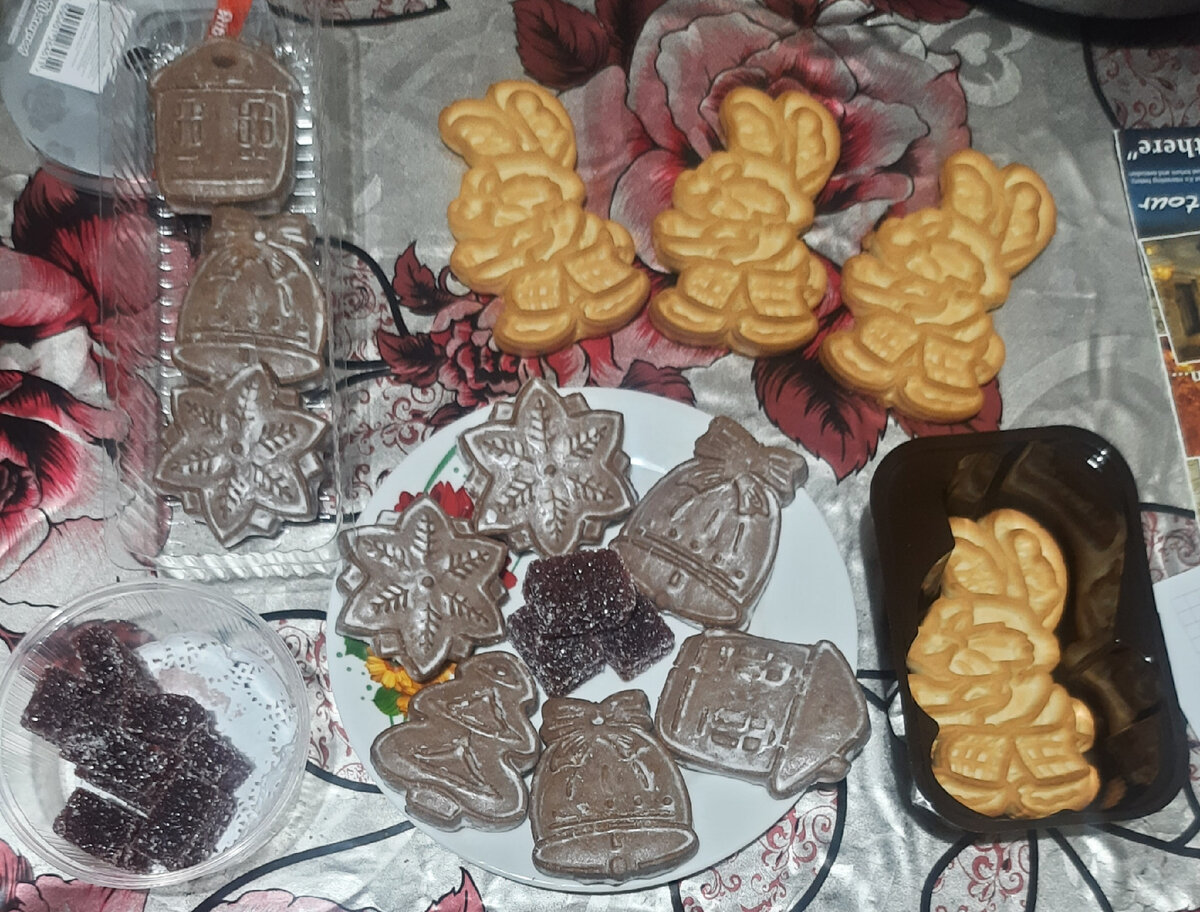 Доброго дня от нас с дочкой) Ей 2,6 и она ест уже почти все. Держу оборону от майонеза, шоколада и фастфуда (кроме пиццы 😋). А все подарки в продаже - сплошь шоколадные конфеты. И карамель, что совсем плохо, тому кто зубную щетку еще держит неуверенно) Вот и вынашивала идею - собрать подарок самой. Выручил Вкус вилл в этот раз. Нашла чудесное печенье в форме символа года - зайчика. Стоит около 100 рублей. И, конечно, имбирное. Оно разной формы: домики, снежинки, елочка. Выглядит очень красиво. Стоит 130 рублей. Мармелад заказывала на озон - натуральный, из брусники. Все разложила в пакетики. Получилось 3 подарочка. Один дочке и два знакомым деткам. Хотела еще дополнить финиковыми конфетами. Я их очень люблю. Но начиталась страшилок про косточки и почти поломанные зубы и заказ отменила. По-моему и так празднично, бюджетно и вкусно) Новогоднего всем настроения! В следующей статье расскажу, как буду завлекать свою двухлетку в 2023 году.. Про подарки короче!)