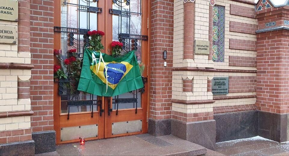 Посольство Бразилии почтило память легендарного футболиста Пеле, приспустив флаг на здании. Судя по видео, снятому «360», флаг сейчас висит на двери посольства и на нем есть надпись от руки. По данным «Известий», там написано: «От болельщиков сборной России и СССР футбольного клуба „Торпедо Москва“». Флаг утопает в красных розах, и люди продолжают нести к зданию дипмиссии цветы. Также у входа стоит мемориальная лампада. Пеле (Эдсон Арантис ду Насименту) умер на 83-м году жизни 29 декабря после продолжительной борьбы с онкологическим заболеванием. Причиной смерти стал отказ различных органов, вызванный болезнью. Состояние бывшего футболиста ухудшалось постепенно, на этой неделе он успел попрощаться с близкими. После смерти Пеле в Бразилии объявили трехдневный траур. Статую Христа-Искупителя в Рио-де-Жанейро в память о нем подсветили цветами национального флага. Трехкратного чемпиона мира по футболу похоронят на вертикальном кладбище в бразильском Сантосе, которое входит в Книгу рекордов