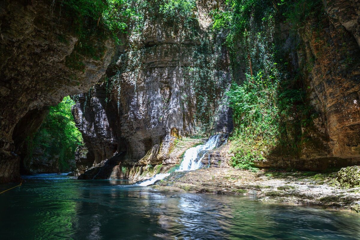 Катание на лодке оплачивается отдельно – 15 лари на человека. Длится всего 15-20 минут и проходит 300-метровый участок реки, но дает возможность посмотреть на нижнюю часть каньона, которую вы не видите с пешеходной дорожки наверху. Туристическая тропа находится высоко, поэтому единственный способ увидеть каменные стены и водопад снизу — на лодке.