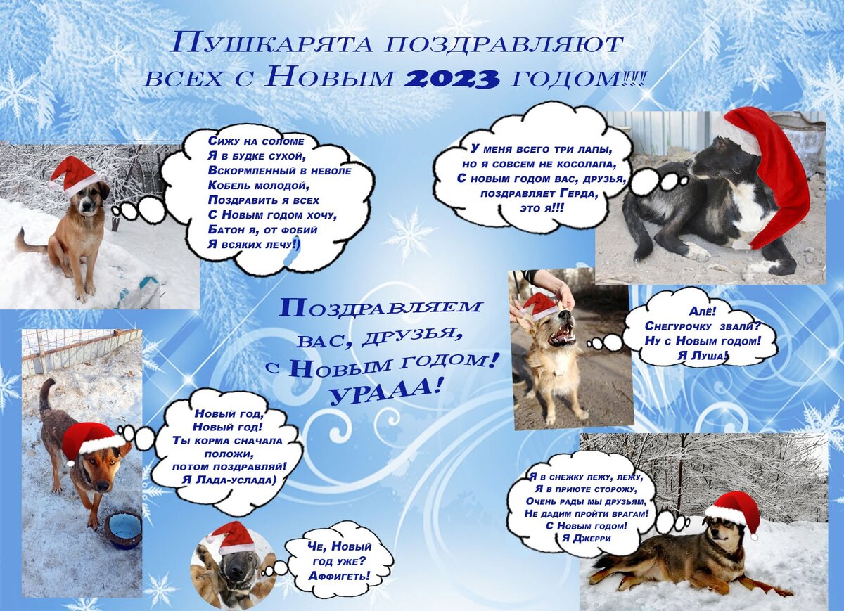 С Новым годом, дорогие наши друзья! Пушкарята от души поздравляют всех участников и гостей группы, всех наших друзей и знакомых, а также администрацию группы с Новым годом! Спасибо вам за постоянную помощь нашим собакам, за поддержку моральную и финансовую, мы любим вас!) 🎄🎅🎁🎆🎉🎊🐕🐕🐕🐕🐕🐕🐕🐕🐕
