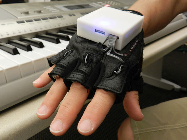 Посмотрите на эту перчатку. Пускай вас не обманывает ее кажущаяся простота. Эта, на первый взгляд, скучная черная кожаная перчатка без пальцев, которая выглядит как любая другая из спортивного магазина, при помощи микро-вибраций может ускорить процесс изучения, к примеру, мелодии для фортепьяно!