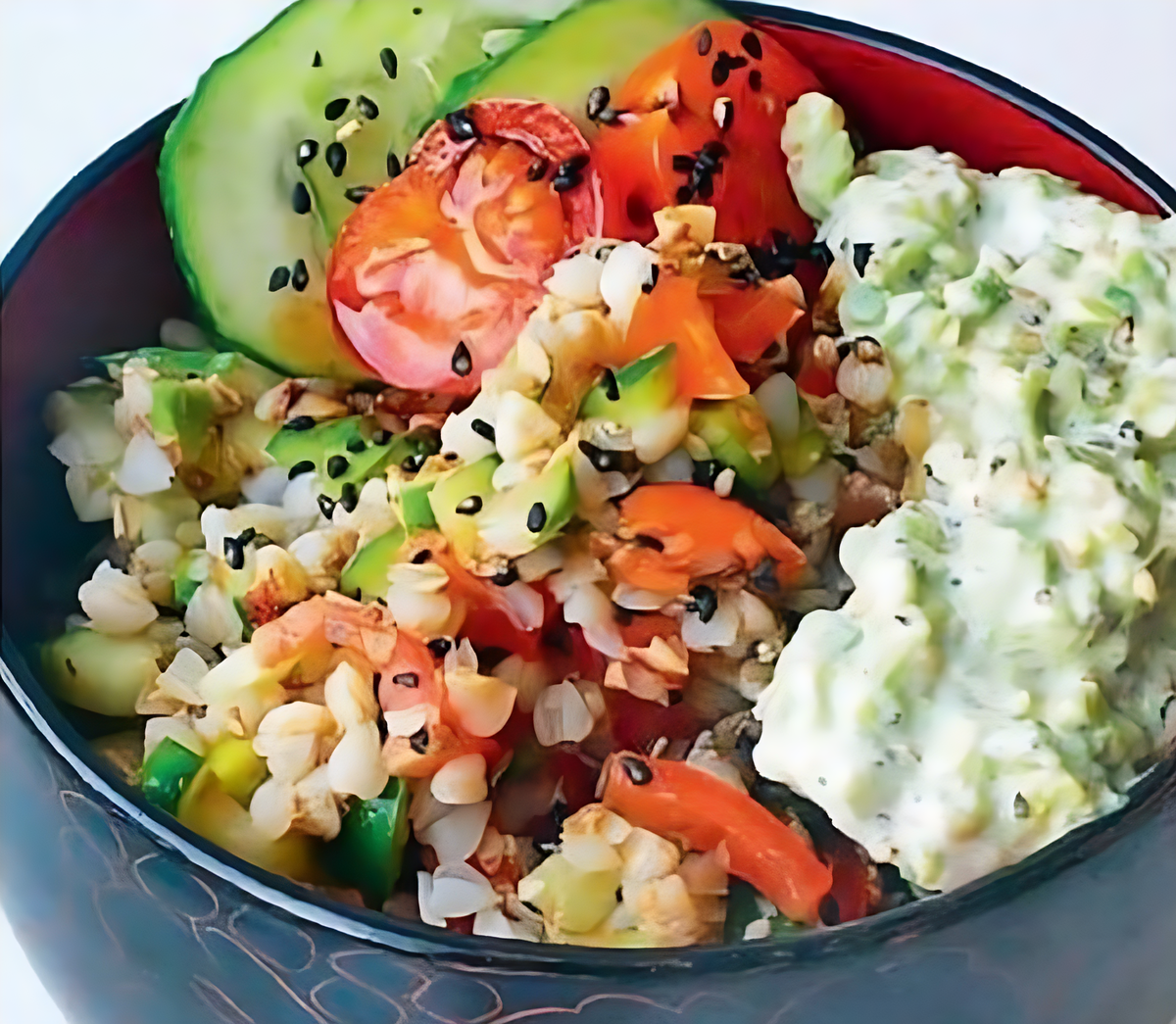Рецепт салата, который хочу предложить вам, прост до невозможности. Но в итоге получается вкусное и полезное блюдо. Салат получается легкий и очень вкусный прекрасное самостоятельное блюдо или дополнение к супу. Без сметаны такой можно и в пост. Кстати, гречку можно не варить, а промыть холодной водой, подсушить на сковороде без масла, ссыпать в контейнер, залить кипятком — его нужно в 2 раза больше, чем крупы. Утром вкусная и максимально полезная каша готова! Понадобится: Для соуса: Приготовление: Совет: Овощи в составе могут быть разные. Хорошо подойдут морковь, сладкий перец, свекла, любая капуста. Я еще слегка поливаю салат бальзамическим уксусом перед подачей.