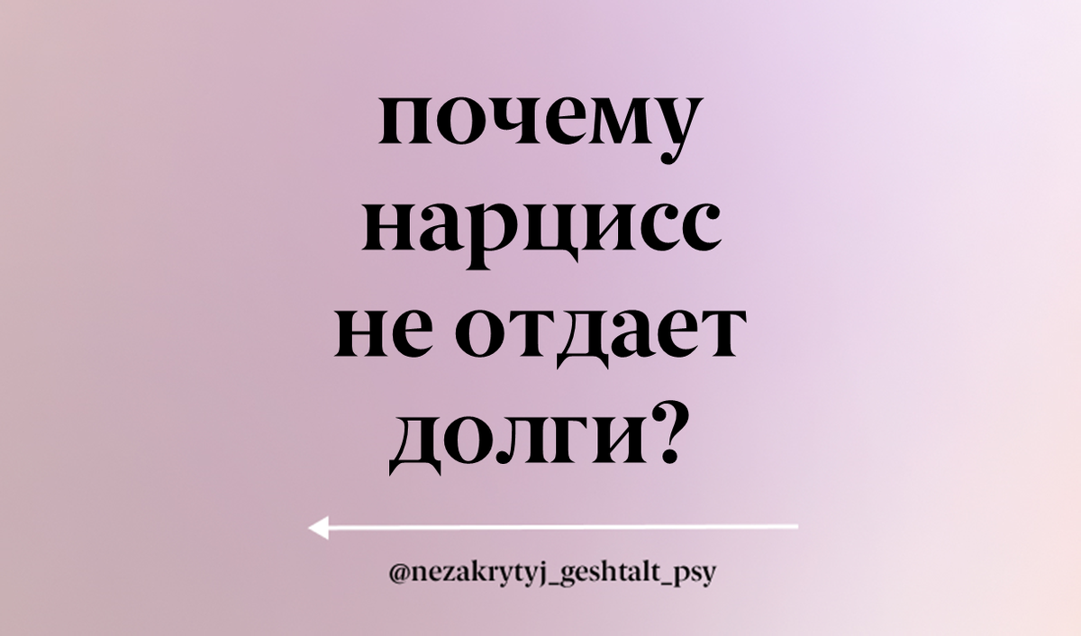 За нежеланием отдавать долги стоят банальная жадность, вседозволенность, потребительское отношение и абсолютное равнодушие. Нарцисс в один щелчок пальцев сделает тех, кто ему что-то давал и кто его поддерживал плохими, когда только зайдет речь о возврате средств, которые были даны в долг. И побежит дальше искать "маму дающую."