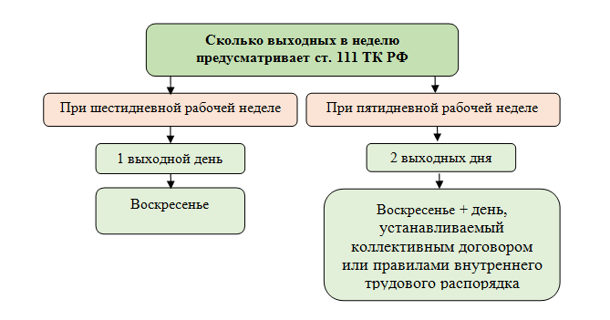 Каждый трудящийся гражданин имеет право на еженедельный отдых — установленный внутренними правилами предприятия отрезок времени, когда можно законно не посещать место работы и не выполнять трудовые обязанности. Механизм определения количества выходных дней прописан в Трудовом кодексе: