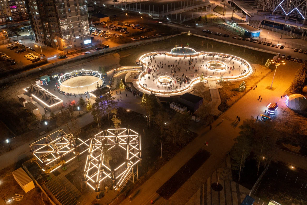 Зима время чудес и исполнения желаний. В эту пору можно прогуляться по украшенному яркими огнями городу, затем согреться чашечкой кофе в уютном кафе. Центральный парк культура и отдыха Рядом с самой главной высотой России и самым большим вантовым стадионом в Европе раскинулся Центральный парк культуры и отдыха. Здесь находится более 20 аттракционов разных видов, а этой зимой нас всех будет ждать большой ледовый каток с зонами фуд-корта и прокатом коньков. Все желающие могут посоревноваться в меткости на хоккейной площадке. Адрес: г. Волгоград, ул. Батальонная, 4 Парк «Раздолье» Одно из популярных мест семейных прогулок в зимнее время: качели, детский городок и кораблики приводят в восторг всех детей. Красочная подсветка Астраханского моста и интерактивного музея «Россия моя история» не только привлекает внимание гостей и жителей города, но и создает предновогоднее настроение. Зимой здесь открыт каток площадью 1800 кв.м, вместимостью 400 человек, который работает даже при плюсовой темп