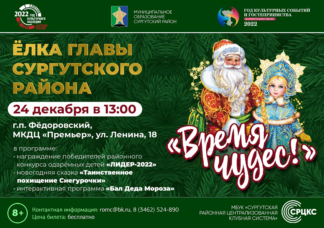 В субботу, 24 декабря, в культурно-досуговом центре Федоровского «Премьер» состоится Ёлка главы Сургутского района. Праздничное мероприятие соберет 335 детей. В этом году особое внимание будет уделено детям из семей мобилизованных и прибывших из Донбасса.