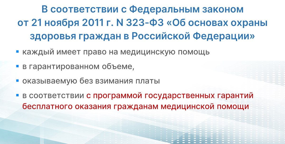 Программа государственных гарантий оказания гражданам бесплатной медицинской помощи является ключевым нормативным правовым документом, описывающим фактические гарантии граждан на медицинскую помощь.