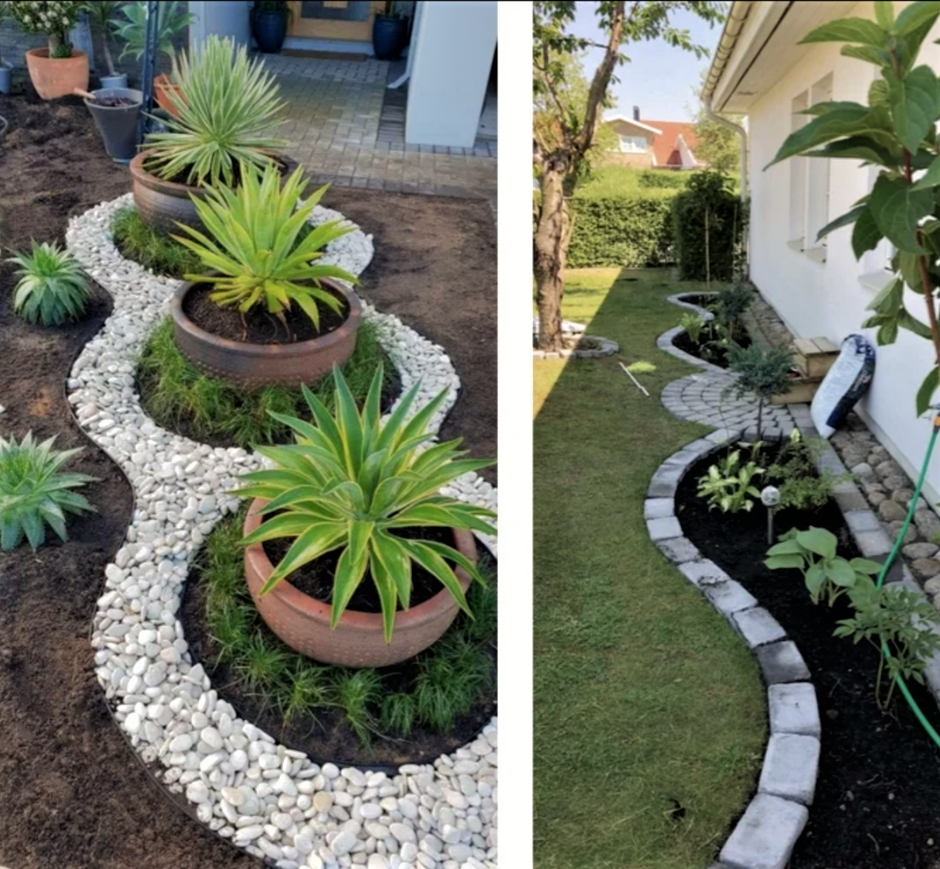 У любого садовода на участке имеются различные клумбы и цветники. В основном они имеют стандартные формы. И чтобы это разнообразить, попробуйте задать ритм вашем саду при помощи нестандартных форм цветников, которые можно сделать из обычных камней, гальки или кирпичей. Поверьте, после этих несложных манипуляций, сад сразу заиграет по-новому.
