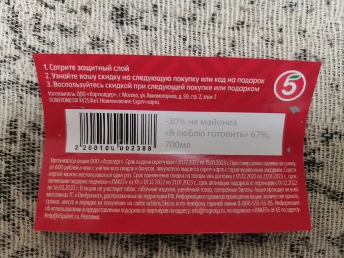 Раздаю коды и штрихкоды пятерочки