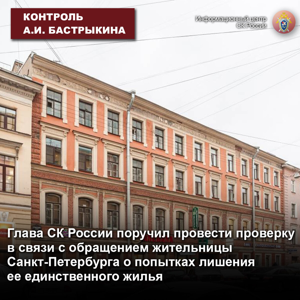 Глава СК России поручил провести проверку в связи с обращением жительницы Санкт-Петербурга о попытках лишения ее единственного жилья