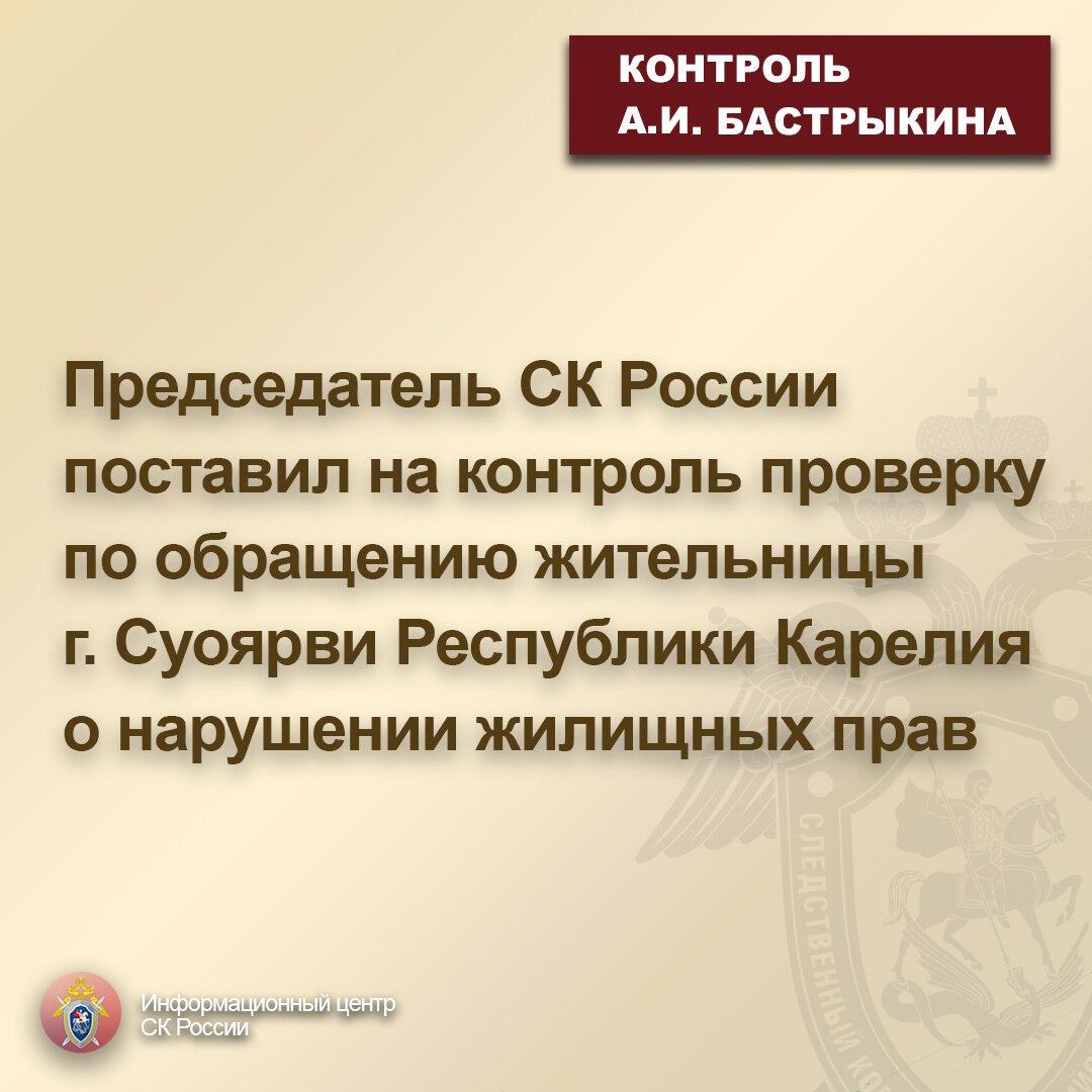 Председатель СК России поставил на контроль проверку по обращению жительницы г. Суоярви Республики Карелия о нарушении жилищных прав