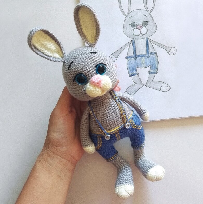 Всем привет! Спешу поделиться с Вами чудесным мастер-классом по вязанию Зайчишки от Натальи Лариной Зайчишка в джинсовых штанишках готов! Ровных петелек всем!