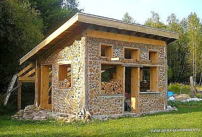 Cordwood (по-нашему глиночурка) – технология строительства, в которой стены кладут из чурок и глиняного или цементного раствора. Дрова очищают от коры, сушат, кладут поперек стены. Особенности технологии На дерево в конструктиве стены приходится 40–60%, остальное – изолирующая смесь и кладочный раствор. Дома из глиночурки кладут или по сквозному или изоляционному методу: первый предполагает добавление изоляционной смеси (обычно это опилки) прямо в раствор или глину; по второму, раствор кладут на 10 см со стороны наружной стены и на 10 см со стороны внутренней, а середину заполняют изоляционным материалом. Толщина стен зависит от климата: в холодных регионах она может достигать и 90 см.