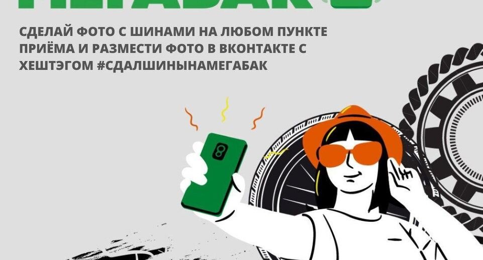 Для принятия участия в акции необходимо было сделать и разместить фотографию в ВКонтакте с хештэгом #сдалшинынаМегабак на любом из пунктов приема крупногабаритных отходов «Мегабак», пунктах переработчиков «Орис Пром», «Дмитровский РТИ» и «ЧРЗ». Важно, чтобы шины были направлены в специально предназначенные для б/у покрышек контейнеры.