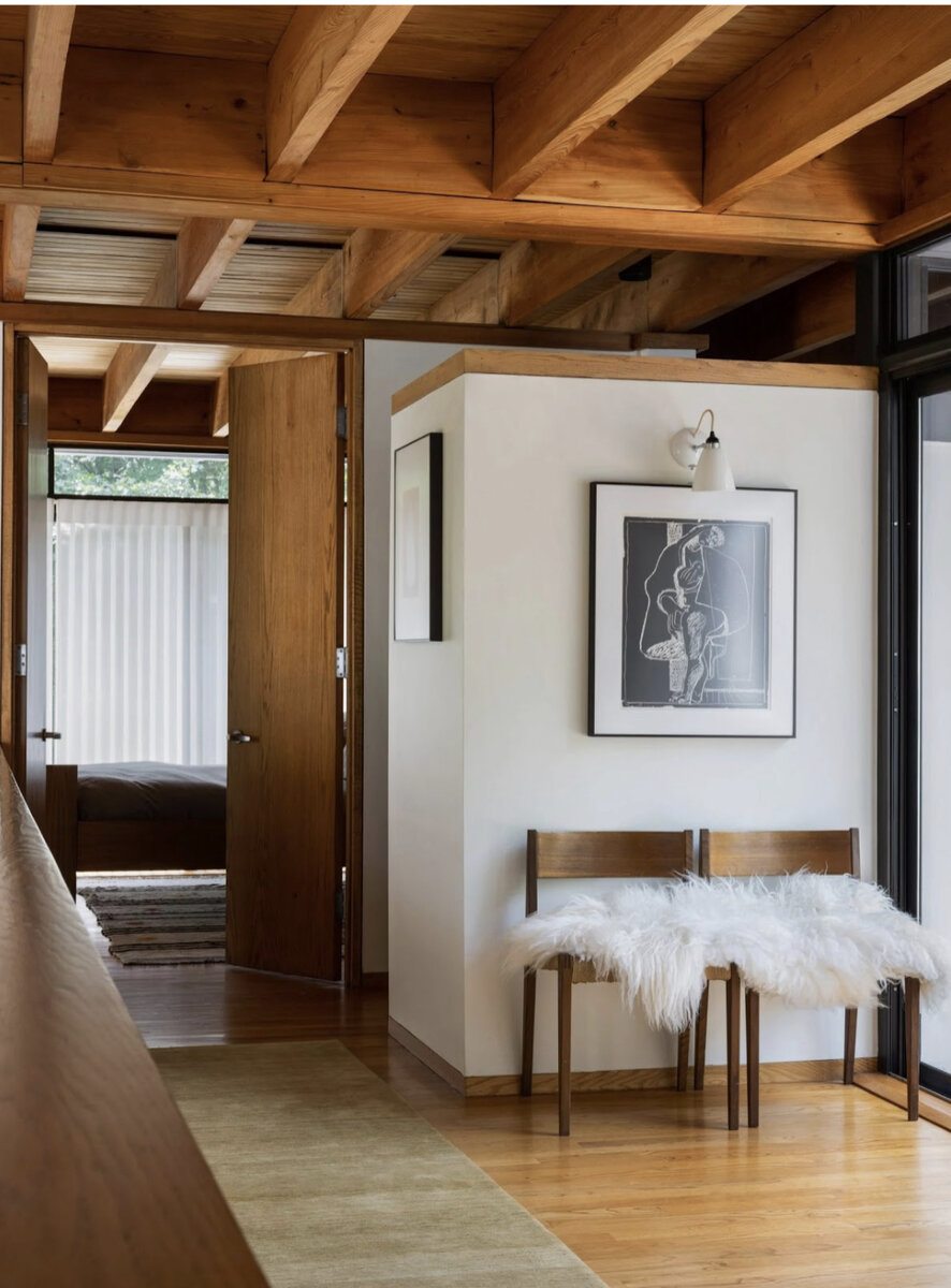Один из оригинальных дизайнерских трендов, заинтересовавший наших специалистов, — открытые деревянные балки. Эти конструктивные элементы, позволяющие создавать большие пролёты без использования опор и колонн, оказывают большое влияние на внешний вид как фасада здания, так и внутреннего пространства. Обычно балки маскируют от посторонних глаз. Но в последние несколько лет появился устойчивый тренд оставлять их на виду и делать частью интерьера. Давайте вместе с нашими дизайнерами рассмотрим пять наиболее интересных решений, которые мы всегда можем воплотить в жизнь. Этот дом расположен в Коннектикуте и окружён живописным лесом. Специалисты студии Stewart-Schafer декорировали его в стиле джапанди, использовав большое количество деревянных деталей, в том числе и открытые видовые балки. Такой подход к оформлению интерьера позволил визуально и стилистически сделать дом органичной частью лесного пейзажа. 2. The Barn, Канада Интерьерами дома занимался монреальский дизайнер Луи Беливо из