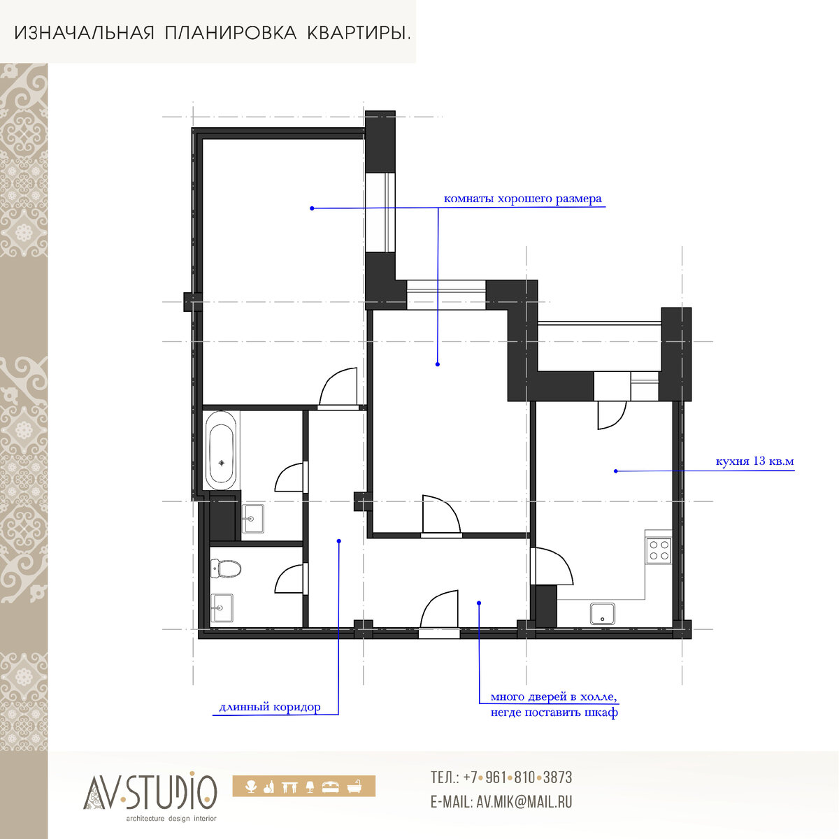 В начале общения с заказчиками я проговариваю, что предоставлю 2-3 варианта перепланировки квартиры или дома. Но иногда у помещения большой потенциал в рамках требований, поэтому предлагаю максимально возможное количество в разумных пределах с учетом пожеланий заказчика. Дано: Двухкомнатная квартира 70 кв.м. Хозяйка этой квартиры – молодая успешная девушка. Попросила сделать комфортное интересное пространство, в котором она бы проживала с любимым мужчиной. Были предоставлены варианты: когда мы почти не трогаем существующие стены и когда сносим все внутренние перегородки и возводим их заново. Как думаете, какой вариант был воплощён в жизнь? Если до сих пор не можете придумать как расставить мебель в квартире, то с удовольствием вам помогу! Предоставлю несколько вариантов с расстановкой мебели и по окончательному выбранному варианту сделаю планы сносимых и возводимых перегородок.