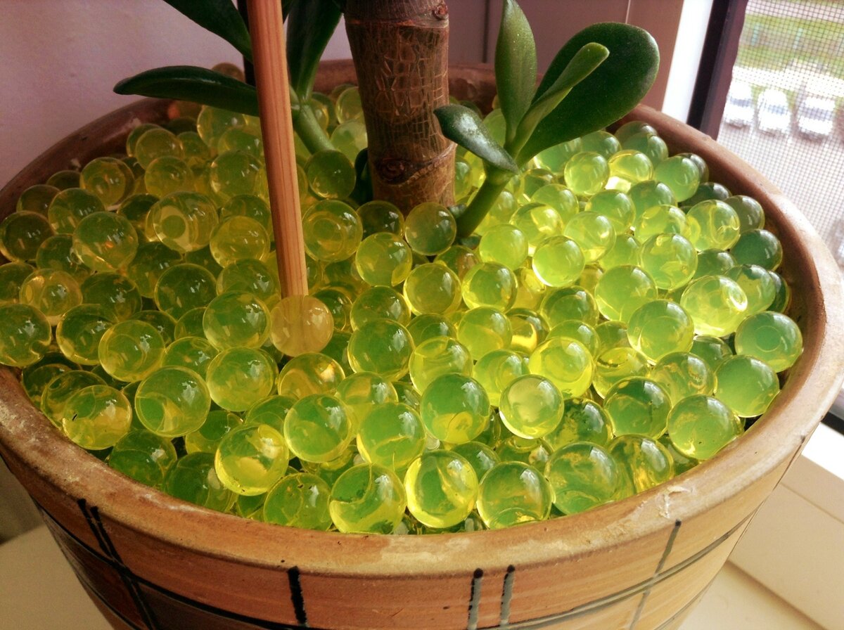 До недавнего времени гидрогель применялся в промышленности и кожгалантерее для уменьшения уровня влажности. Так было ровно до того момента, пока не было замечено, что это вещество способно не только поглощать излишнюю жидкость из влажных предметов, но отдавать ее сухим. И именно качество гидрогеля стало незаменимым для огородников. Гидрогель полезный и не очень Гидрогель пока не получил очень широкого распространения, поэтому многие садоводы имеют о нем весьма туманно представление. Этим пользуются недобросовестные продавцы и пытаются продать вместо гидрогеля аквагрунт. Последний представляет собой разноцветные шарики небольшого размера. Однако свойствами полноценного гидрогеля они не обладают. Их сфера применения – создание декоративных композиций со срезанными цветами. Садовый гидрогель представляет собой мелкую белесую крошку, которая при контакте с водой увеличивается в 200-300 раз, образую студенистую массу, наподобие желатина.