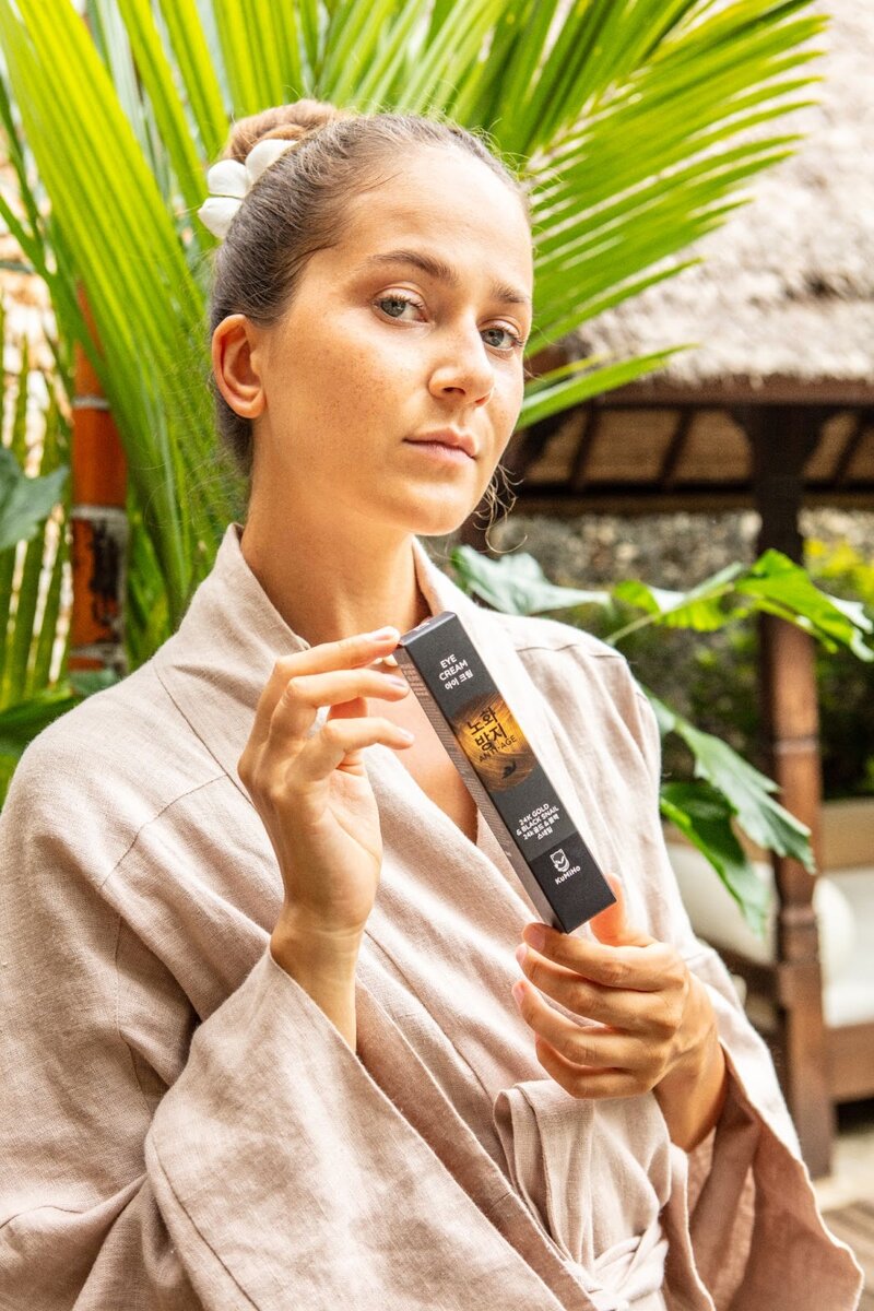 Зона вокруг глаз требует повышенного внимания в уходе. По сравнению с другими участками кожа в этой области тоньше и отличается меньшим количеством коллагена и сальных желез. Именно поэтому использовать для нежной кожи вокруг глаз обычный крем для лица — не эффективно. Необходимо подбирать отдельный крем для этой области. Чтобы обезопасить себя от старения, ухоженные кореянки тщательно выбирают средства для ухода за кожей вокруг глаз и обращают внимание на определенные моменты: Упаковка Чтобы при взаимодействии с воздухом компоненты не теряли свои свойства, флакон с кремом должен герметично закрываться. Выбирая крем для глаз, стоит отдать предпочтение тюбику с тонким наконечником. Такой формат упаковки обеспечивает не только экономичный расход средства, но и комфортное нанесение. Состав Как и в любом уходом средстве, в креме для глаз очень важны активные компоненты. В креме для глаз KuMiHo это гиалуроновая кислота, которая стимулирует выработку коллагена и обеспечивает клеткам кожи гл