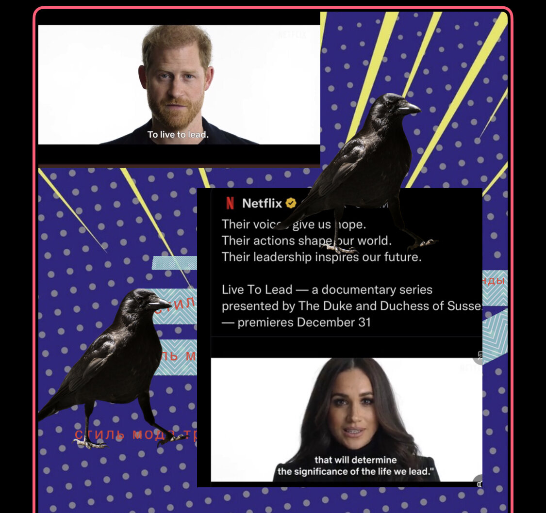 Как я и предупреждала вас, уважаемые читатели, под елочку Санта Гарри и Снегурка Меган положат королевской семье не один подарочек. Пятьдесят минут назад Netflix сообщил обалдевшему человечеству, что сага Маркл ииМеган продолжена! Но теперь эти двое продолжат рекламировать себя- активных и успешных «лидеров», рассказывая о других лидерах в опять документальном фильме « Жить, чтобы вести». Главные поводыри на моем фотоколлаже. Остановите поезд, я сойду. В Новогодний праздник - а фильм выпустят 31 декабря- я отказываюсь смотреть их. Примета такая, да! Как Новый год встретишь, так и проведешь…