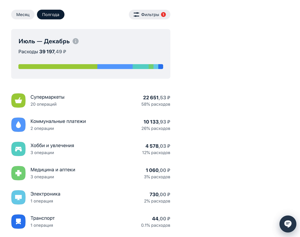 По логике задумки, о которой поведал в статье Получу ли 153600₽ в год при тратах 40000₽ в месяц?, отдать вторую кредитку Ире мысль правильная. Она тоже тратит и довольно много, и на семью. Может не все расходы мне нравятся (в плане я бы нашёл по скидке тоже самое), но в целом моя Ирочка заботится о детях, обо мне и о себе - обо всей семье. Вот какие покупки по этой, второй кредитке: Ну и видно, на что Ира потратила - продукты в основном. Есть тут платежи которые я делал - это ЖКХ и самые первые два платежа по этой карте тоже мои. Плюсы этой карты: По секрету скажу, что у этого банка на текущую дату, 19.12.2022, при выполнении спецусловий с этой картой можно получить 1000 рублей кэшбэка, просто за то, что вы взяли эту карту. Чтобы получить 1000 Чтобы не было расходов на обслуживание карты Текущие лимиты и расходы - половину выгребли, это как, по идее, наши расходы на месяц: Однако первая моя кредитная карта уже почти пустая! Это потому что я ей пользоваться начал намного раньше, и всё