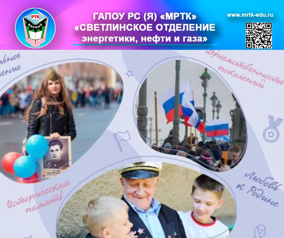 «Разговоры о важном» на тему «День героев Отечества» проведены в «Светлинском отделении энергетики, нефти и газа». Социальные сети МРТК: подпишись и живи ярко! 19 декабря 2022 года в ГАПОУ РС(Я) «МРТК» «Светлинское отделение энергетики, нефти и газа» единый классный час «Разговоры о важном» прошёл в дистанционном формате. На классном часе «День героев Отечества», говорили о том, что каждый человек – потенциальный герой. Герой может совершить поступок, который изменит ход истории, откликнется в сердцах людей. Просмотрели видео о героев, совершившие подвиги: об участнике контртеррористической операции на территории Республики Дагестан Дмитрии Перминове, матросе Тихоокеанского флота Алдаре Цыденжапове, жителе села Ижма Республик Коми Сергее Сотникове, подвиге врачей. К сожалению, многие из них совершили подвиг ценой собственной жизни, однако память о них самих и их поступках будет еще долго поддерживать нас и служить примером для подражания. Разговор получился интересным, важным и полезн