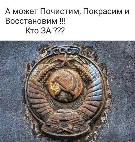 Я за. Моя Родина -Советский Союз! У большинства здешней публики каша в голове. Это большинство путает две вещи - единый Союз как державу и социально-экономическую систему в Советском Союзе. Союз можно было сохранить и без социализма, будь крепкий центр и вместо предателя Горбачева сильный имперец-государственник. А социализм может существовать и без Советского Союза. Тут людям надо было бы определиться, - Чего они хотят? Одно или другое по отдельности вполне реально воссоздать. Тем более, что основа имеется - это Союзное государство России и Белоруссии. Можно реально воссоздать конфедерацию. А вот с социализмом сложнее. Казалось бы, достаточно коммунистам получить конституционное большинство на выборах. Но коммунистам никогда его не получить. Большинство населения материально живет получше, чем в Советском Союзе. Хуже или совсем бедствует - меньшинство! К сожалению это левое меньшинство ничего не может понять и слушать ничего не желает. Подать им Советский Союз и баста. А волшебных ск