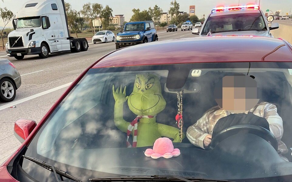 Полиция штата Аризона (США) сообщила, что дала штраф водителю за то, что он вез на пассажирском сиденье надувного Гринча. Это почему?