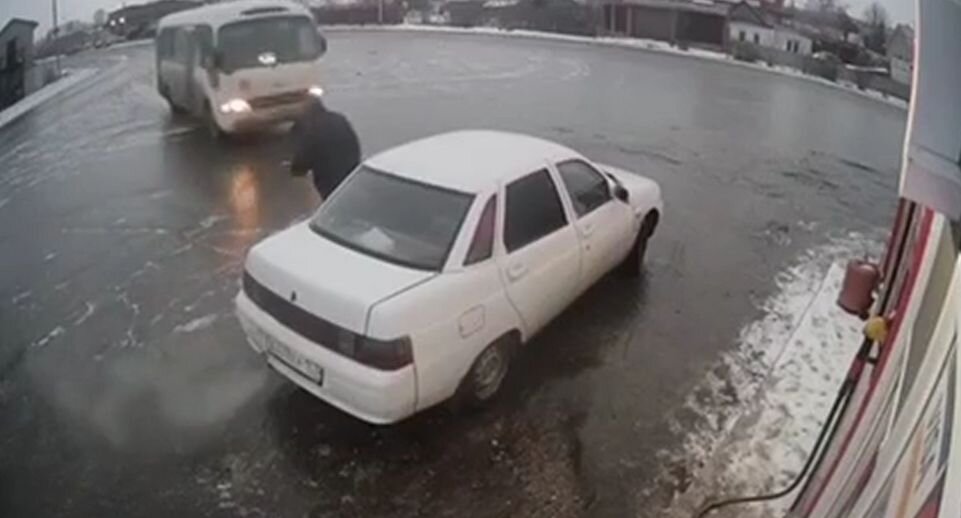 Из-за гололедицы в городе Кинели Самарской области автобус не успел свернуть и въехал в Lada 110 на заправке. Видео ДТП опубликовал Telegram-канал «Подслушано. Самара». Авария произошла в частном секторе. «Десятка» с запущенным мотором стояла у автозаправки, владелец ходил вокруг машины и чего-то ждал. Вдруг мужчина увидел автобус, который на скорости ехал прямо в его сторону. Водитель несколько секунд простоял на месте и отскочил в последний момент перед столкновением — автобус пролетел в паре метров от него. Автор видео заявил, что автобус попытался свернуть — в момент аварии у него горел правый поворотник, — но из-за гололедицы не смог. В Самарской области из-за гололедицы ввели «желтый» уровень погодной опасности, предупредили в Приволжском УГМС. Госавтоинспекция 19 декабря посоветовала водителям пересесть на общественный транспорт, а за день до этого приостановила межмуниципальные и межрегиональные автобусные рейсы.