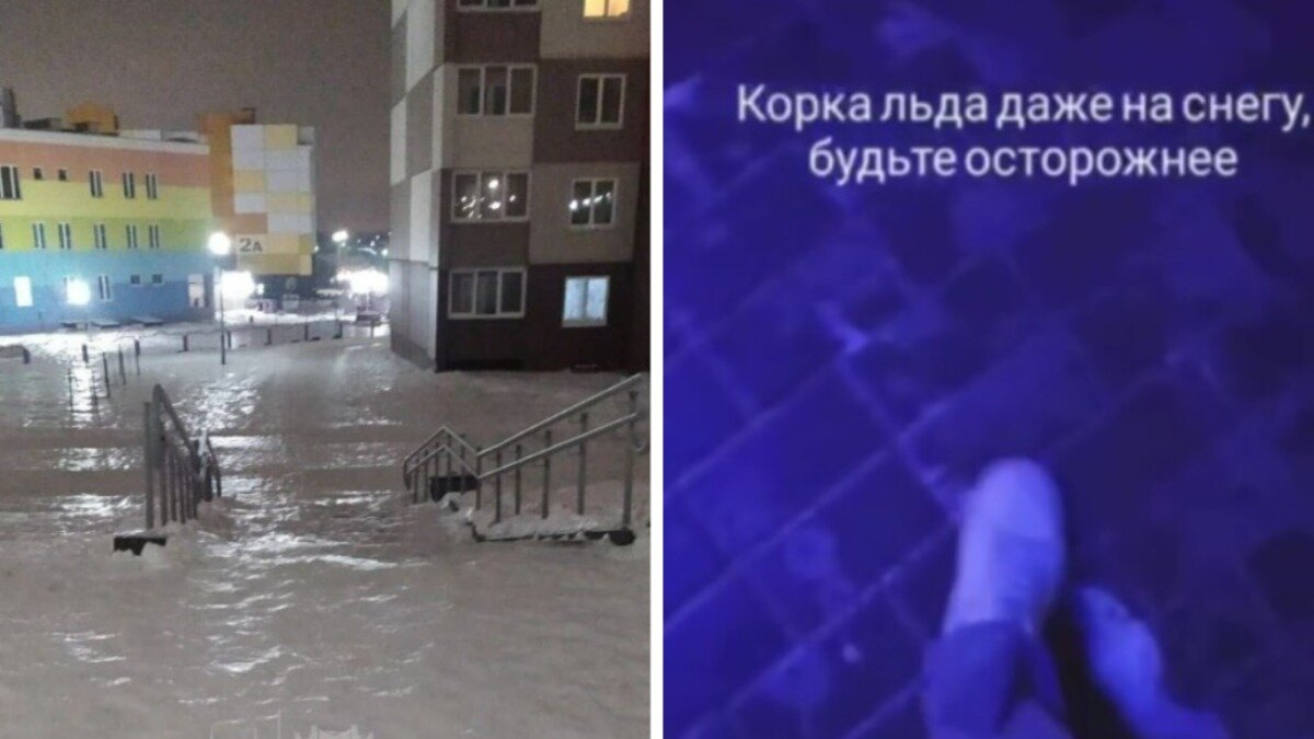 Также местные жители показали, как им пришлось добираться по скользким тротуарам. Корка льда образовалась даже на самом снегу.