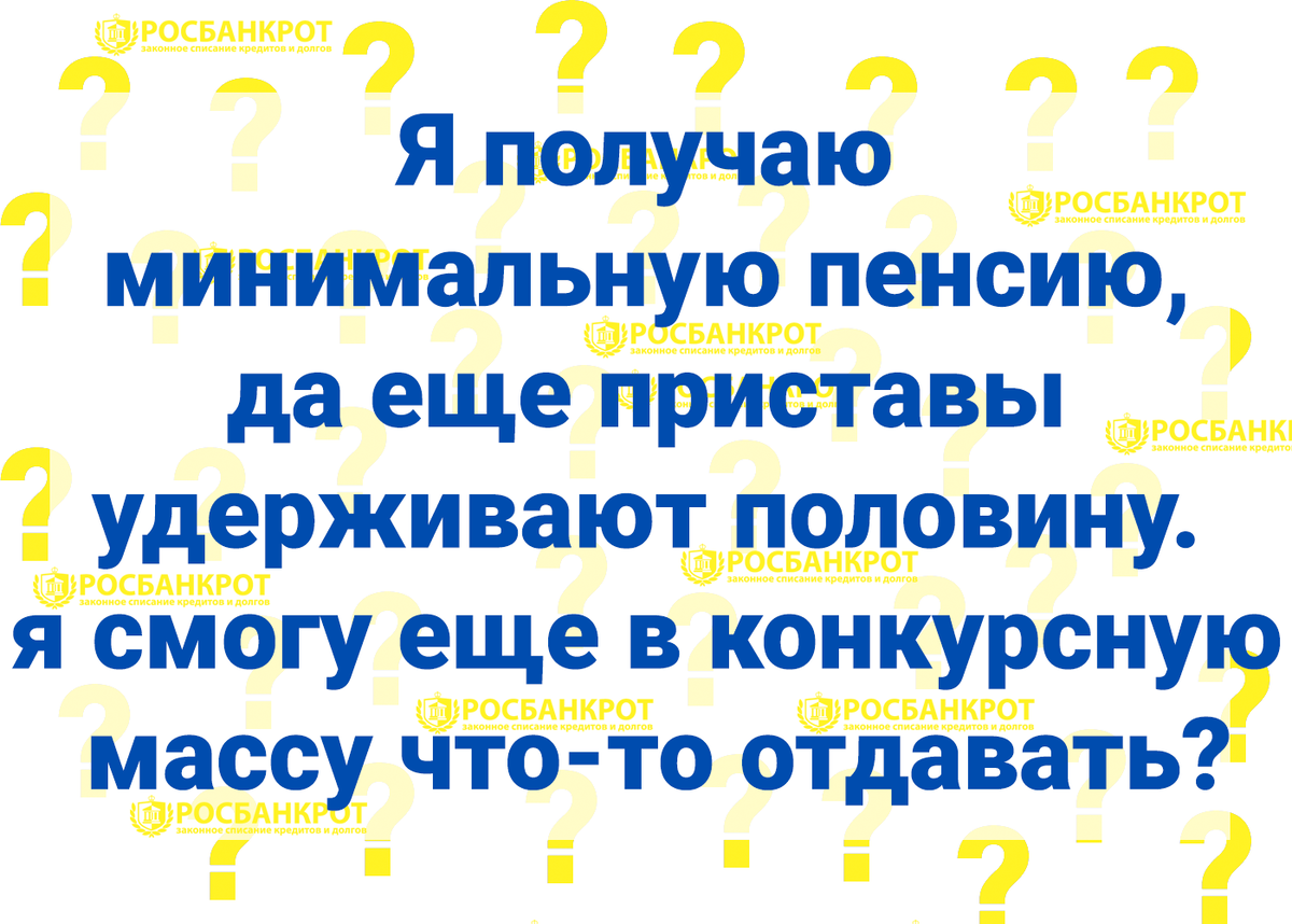Я получаю минимальную пенсию, да еще приставы удерживают половину. Разве я смогу еще в конкурсную массу что-то отдавать?