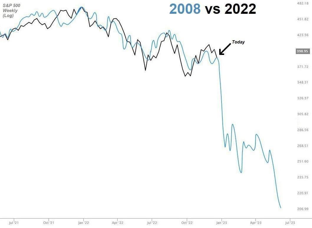 Пугающая корреляция между графиками индекса S&P500 2008 и 2022