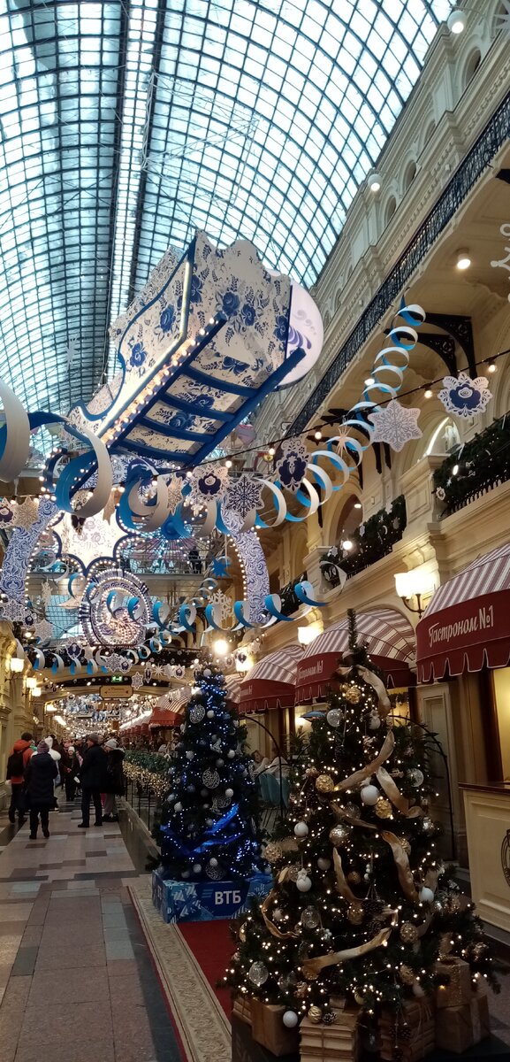 В завершение года порадую вас несколькими заметками с яркими новогодними картинками :), разбитыми по тематикам. === Ранее вышло два ролика, для любителей видеоформата: ПЕРВЫЙ и ВТОРОЙ. Кто не доберется до Москвы в эти новогодние каникулы - приглашаю прогуляться по ГУМу вместе со мной :) === ГУМ, как и всегда, чудесно украсили; его каждый год украшают по-новому (кстати, а ВОТ КАК украшали ГУМ на прошлый Новый год) В этом году выбрали тематику Гжели - все бело-синее - а ещк поставили на одной из аллей огромный "снежный шар". Да ну что я вам рассказываю, смотрите сами 😉 Все фото авторские. Как вам?