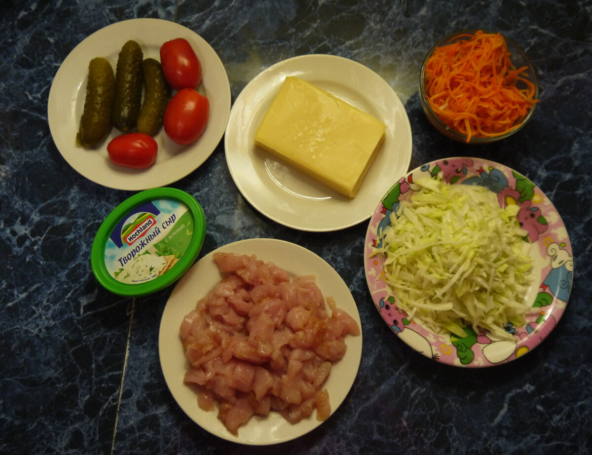 Очень много людей любят шаурму. Потому что это вкусно, сытно, недорого. К тому же в крупных городах её продают на каждом шагу. Шаурма – идеальный вариант для перекуса на ходу, когда нет времени или возможности съесть полноценный обед. Единственное, что беспокоит во время её покупки – качество продуктов, из которых она приготовлена. Поэтому многие любители вкусно поесть предпочитают готовить это блюдо в домашних условиях. Мы не исключение, сегодня будем готовить шаурму дома. Тем более, что почти все продукты мы вырастили своими руками на дачном участке, начиная от кур и заканчивая помидорами. Только лаваш, майонез, сыр и кетчуп пришлось купить в магазине. Для приготовления шаурмы с курицей нам понадобятся следующие продукты: - огурцы маринованные; - свежие помидоры; - твёрдый сыр; - творожный сыр; - куриная грудка; - морковь по-корейски; - капуста; - майонез, кетчуп, соевый соус, чеснок, лук, перец; - лаваш. Закинуть автору на продукты можно здесь. Сначала приготовим курицу. Для этого к