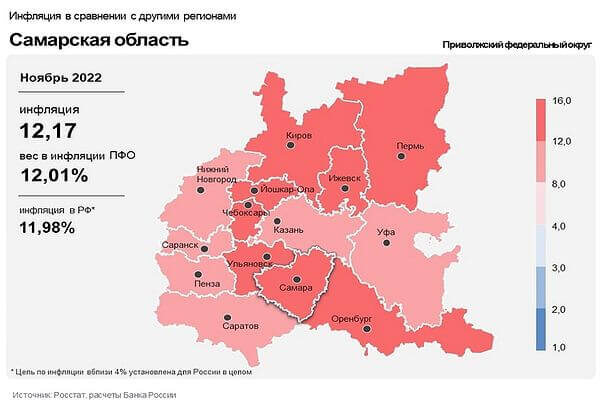 В Самарской области в ноябре 2022 года уменьшилась годовая инфляция, но ее уровень остался выше, чем по стране