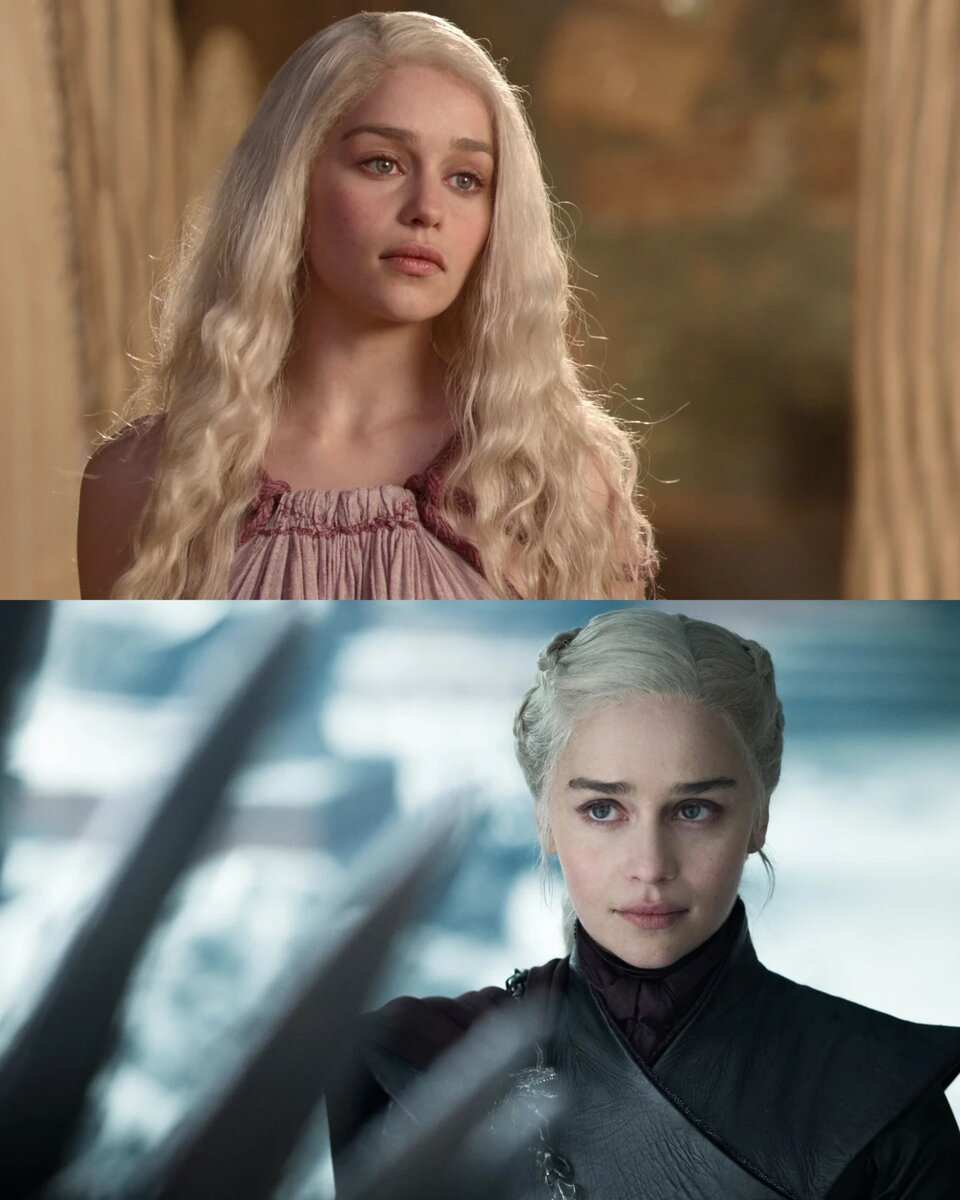 Также Эмилия не вносила изменения в свои волосы. Все прически Дейнерис - это парики, причем интересно то, что с каждым новым сезоном кос на голове у Дейнерис все больше. Чем больше она брала власти в свои руки и чем сильнее становилась, тем величественнее и красивее выглядела ее прическа.
