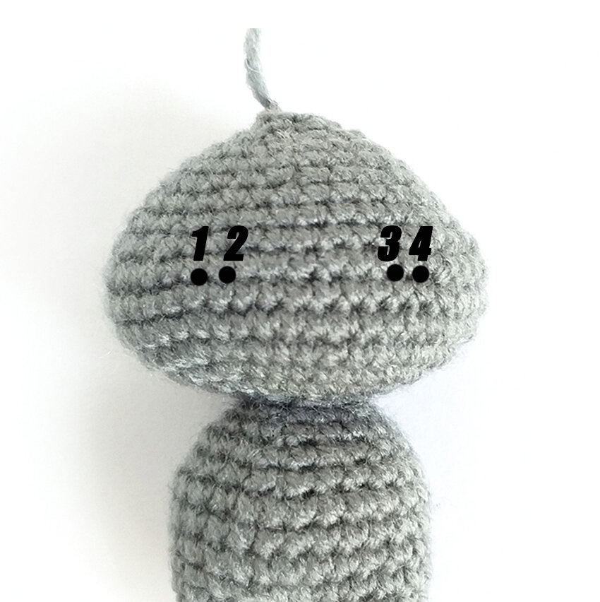 Подготовить длинную иглу и прочную нить. Закрепить нить в точке 0, вывести в точку 1. Ввести в точку 2, вывести в точку 0. Хорошо подтянуть, закрепить. Повторить утяжку еще раз. Утяжку для второго глаза выполнить аналогично. Точки 0-3-4-0.