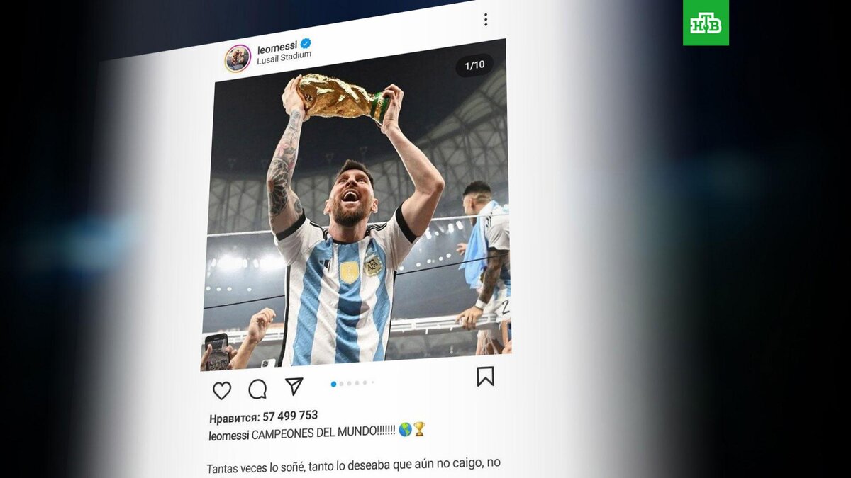 Лионель Месси установил рекорд Instagram (запрещен в РФ; принадлежит корпорации Meta, которая признана в РФ экстремистской) по числу лайков. Рекордный пост Лионель Месси опубликовал после победы сборной Аргентины на чемпионате мира в Катаре. «Чемпионы мира! Сколько я об этом мечтал, до сих пор не могу поверить. Огромное спасибо моей семье, всем, кто меня поддерживает, а также всем, кто верил в нас», — подписал Месси свое фото с Кубком мира. Этот пост набрал уже больше 56,2 млн лайков, это рекорд среди всех публикаций в соцсети. Ранее достижение принадлежало снимку куриного яйца, который в январе 2019 года был опубликован с подписью «Давайте установим мировой рекорд вместе».